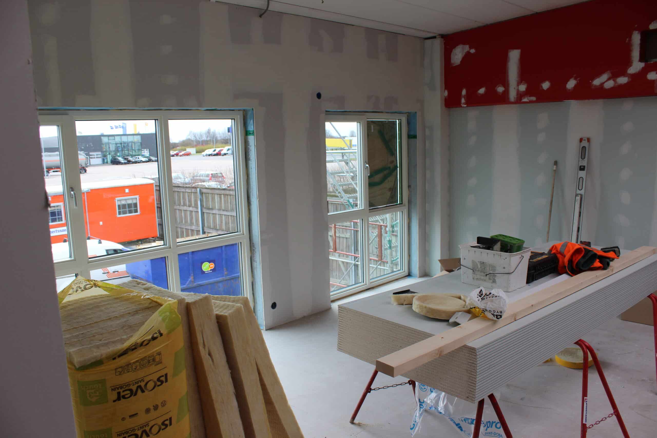 Med stora fina fönster börjar vi nu verkligen längta efter att få flytta in våra ljusa stora lokaler.