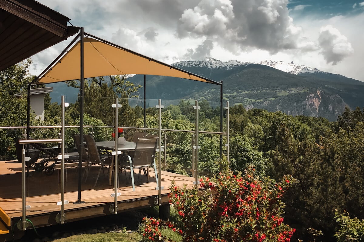 Vindskyddet tillverkas alltid i härdat laminerat glas, för att (trots sin stora yta) stå emot väder, vind och andra påfrestningar. På vårt rostfria glasräcke har du möjlighet att integrera vindskydd i delar av räcket. Finns även möjlighet att välja till opalt glas för insynsskydd.