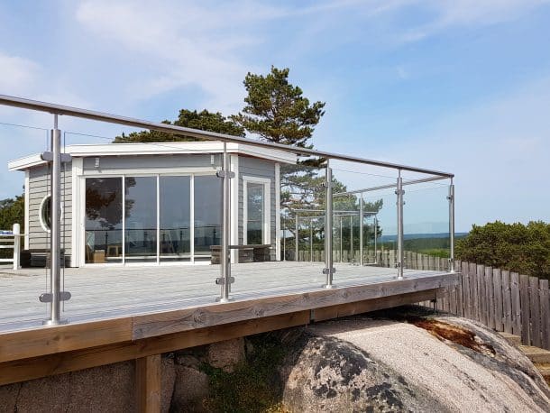 Här har en norsk kund valt rostfritt glasräcke med klart glas till sin härliga terrass!