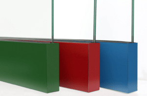 Du kan välja att lacka skenan till stolpfritt glasräcke i den RAL-färg du önskar. Väljer du dessutom en överliggare i aluminium lackas den i samma färg.