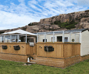 Även på mur är denna lösning funktionell och skapar en uteplats som kan användas längre in på säsongen.