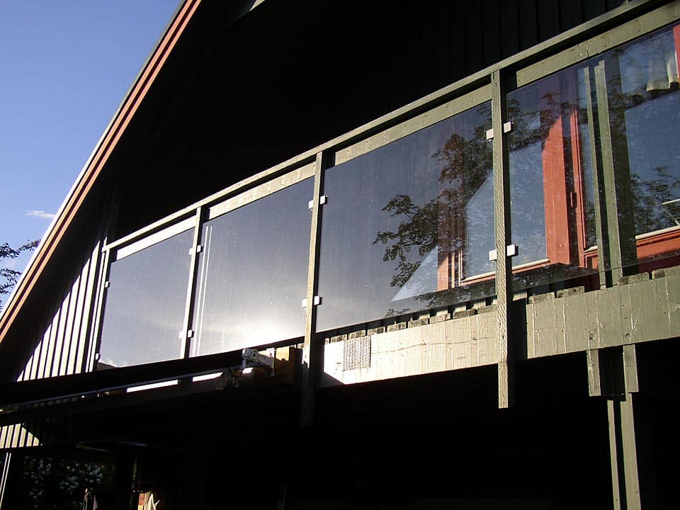 Ett annat användningsområde är det i det fall man bygger ett nytt räcke av t.ex. tryckimpregnerade stolpar. Med glas och klämfästen som fyllning får man ett riktigt snyggt räcke.