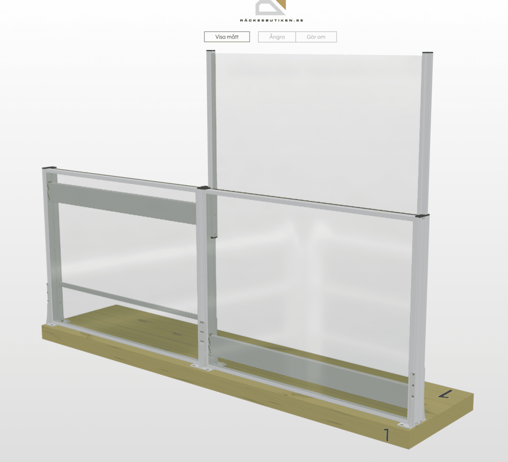 Du designar ditt unika höj och sänkbara räcke i vår konfigurator, här väljer du även till olika designval, dvs om du vill ha med eller utan glaslist och andra valmöjligheter.