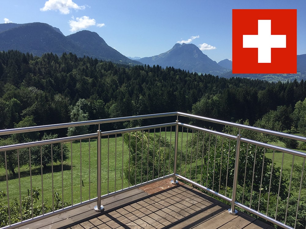 Förutom våra grannar i Norden har även fransmän, tyskar och österrikare kunnat beställa våra räcken på nätet sedan några år tillbaka. Nu är det schweizarnas tur! Vi har levererat räcken till Schweiz även tidigare, men med lite extra export- och importkrångel för både oss och kunderna på grund av att Schweiz inte är medlem i EU. Så det var glada miner på kontoret när vi i somras smög ut de båda schweiziska hemsidorna – en på tyska och en på franska: