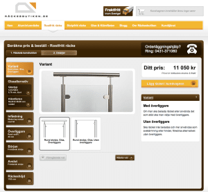 Den största nyheten är vårt helt nya pris- och beställningsverktyg. Med hjälp av detta får man möjligheter att skräddarsy sitt räcke ännu mer än vad som tidigare varit möjligt. Alla val presenteras med illustration samt bild på hur det kommer se ut.