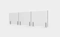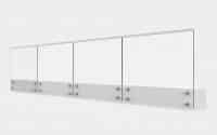 - Golvfästen: Varje glas fästs i två golvfästen i aluminium – antingen utanpå eller ovanpå underlaget.