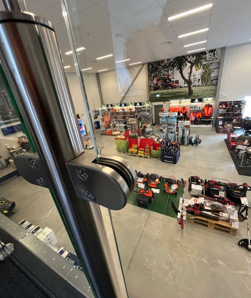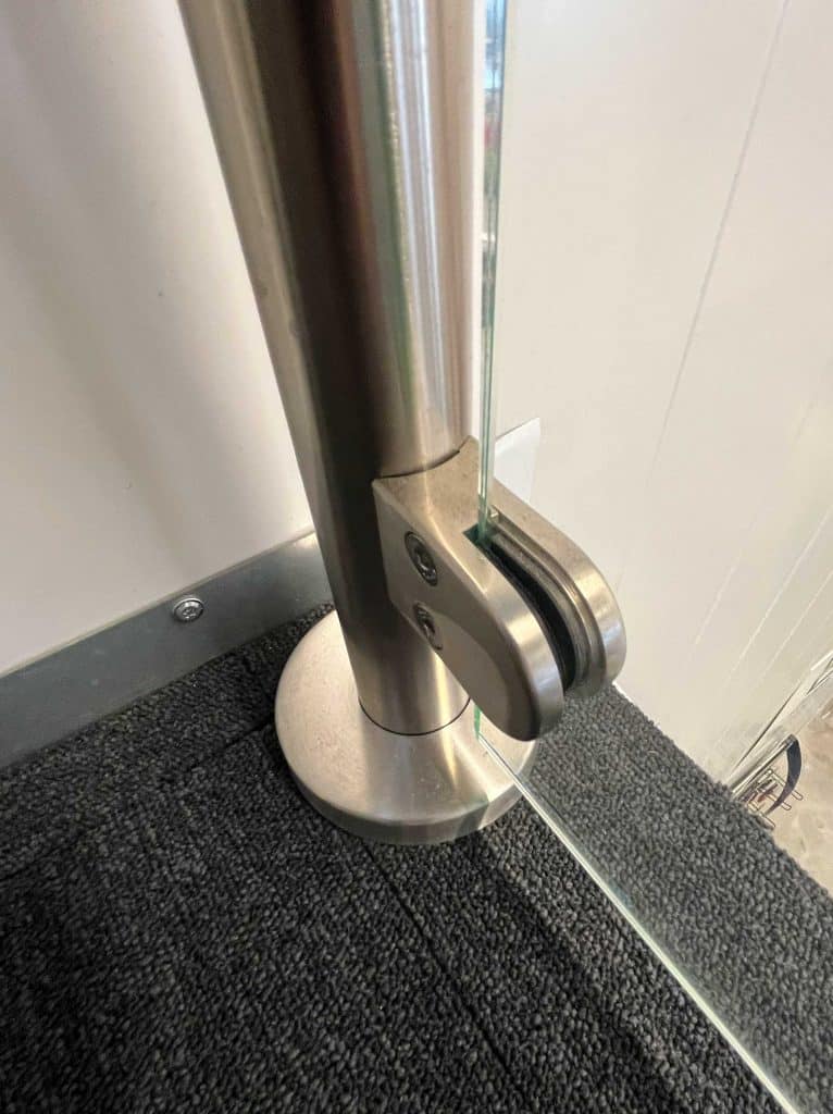 - 30 m rostfritt ovanpåmonterat räcke med rostfri överliggare 8,76 mm glas