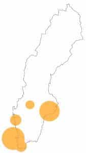När du designar din produkt i vårt designverktyg kan du under fliken Montering skriva in ditt postnummer och se om tjänsten är tillgänglig i ditt område (områdena markerat med orange på kartan ger en fingervisning av var vi erbjuder montage).
