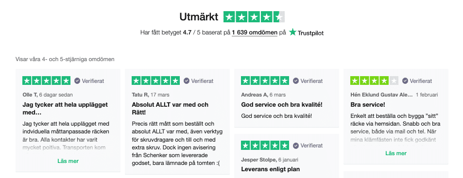 Räckesbutiken har en stor säljorganisation med mångårig och unik erfarenhet av måttanpassade räcken. Vi hanterar i dagsläget 8 språk och 13 marknader. I samma lokaler har vi även vår produktion och produktutveckling vilket innebär att vi har en unik kontroll på hela leveranskedjan.